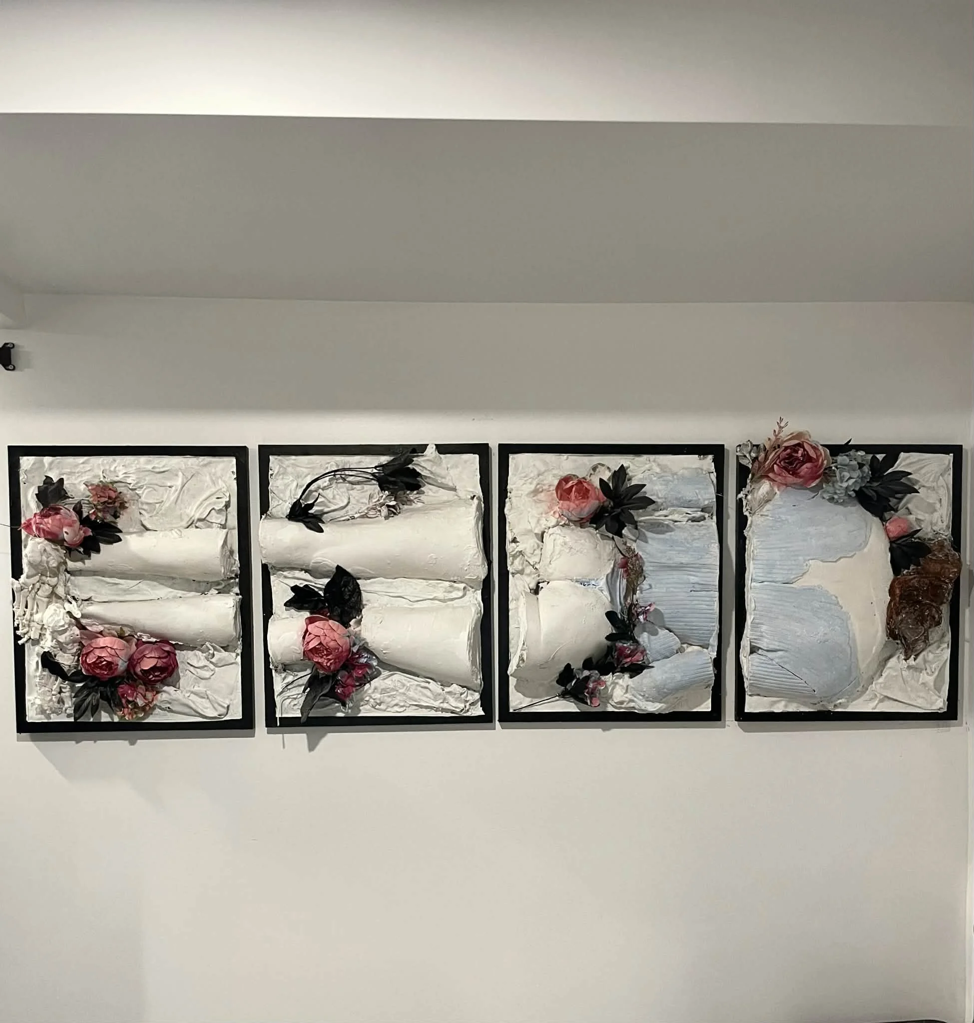 Le dernier printemps, cire, Lilas séchés, métal, Plexiglas, bijoux, chapelet, peinture, maquillage, 28'' x 20'' x 20'', 2025,